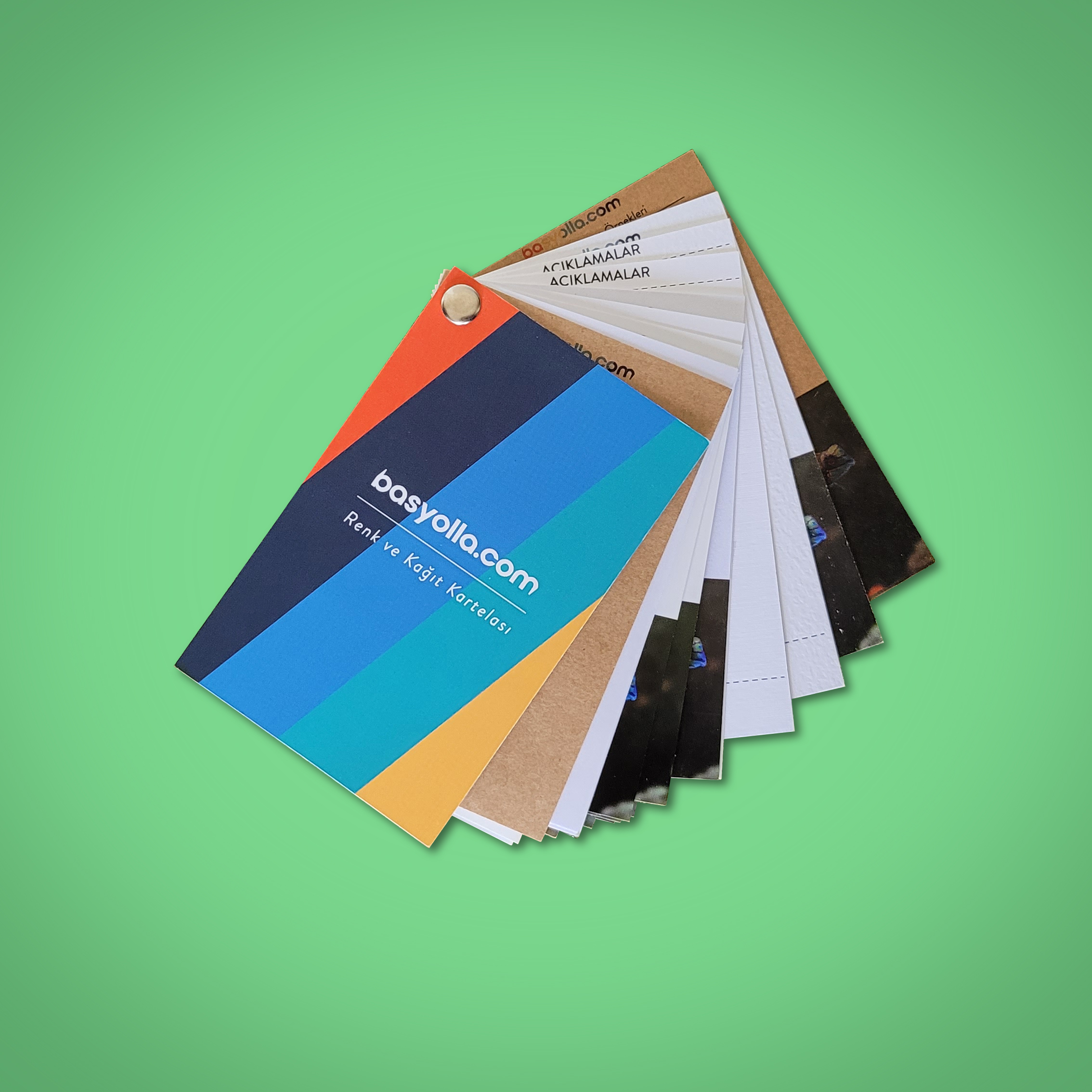 Kağıt Kartelası, sticker, kartvizit ve diğer baskı ürünlerimizde kullandığımız tüm kağıt çeşitlerini bir arada sunar. Online görseller yerine, kağıdı dokunarak hissedebilir ve yüzey farklarını net şekilde inceleyebilirsiniz.