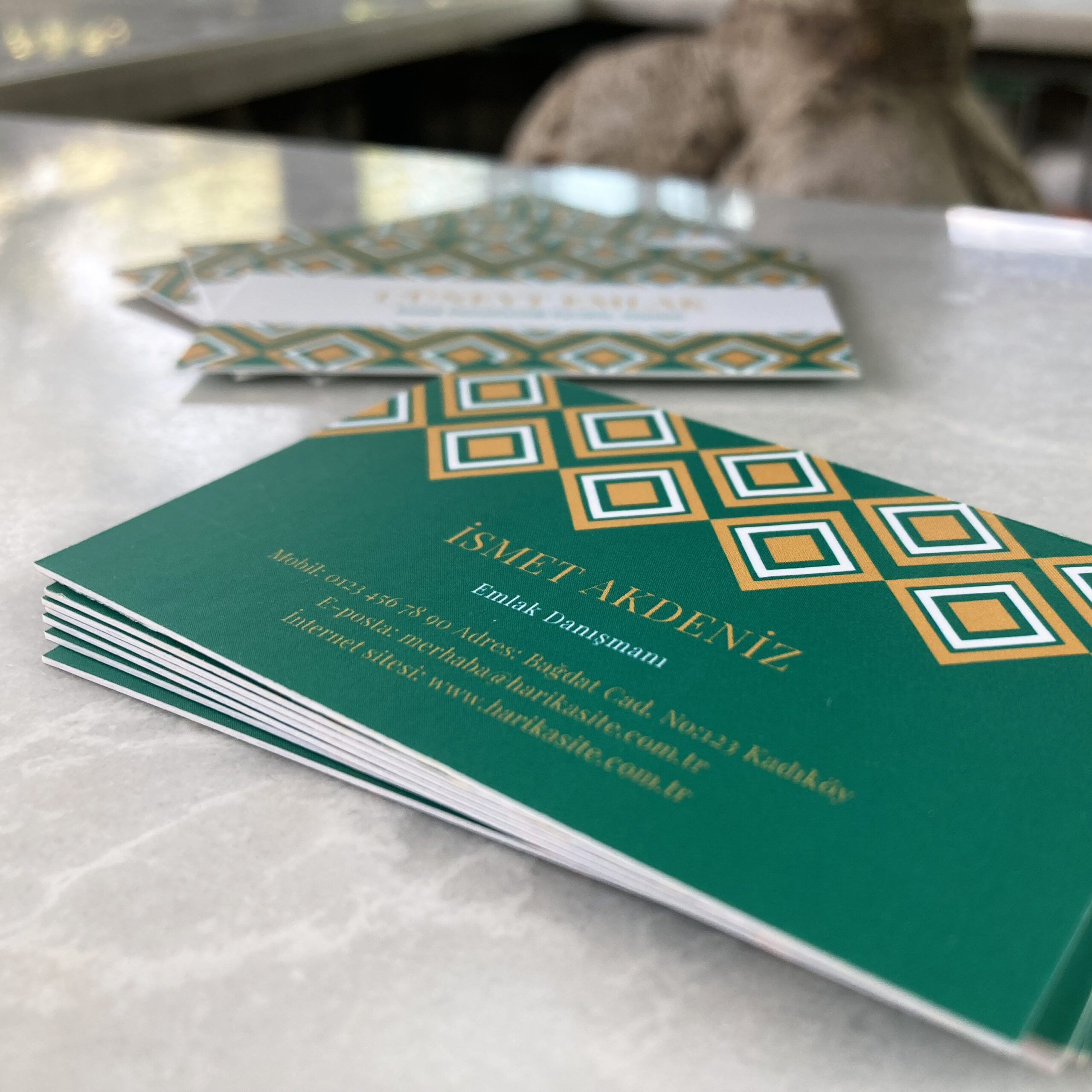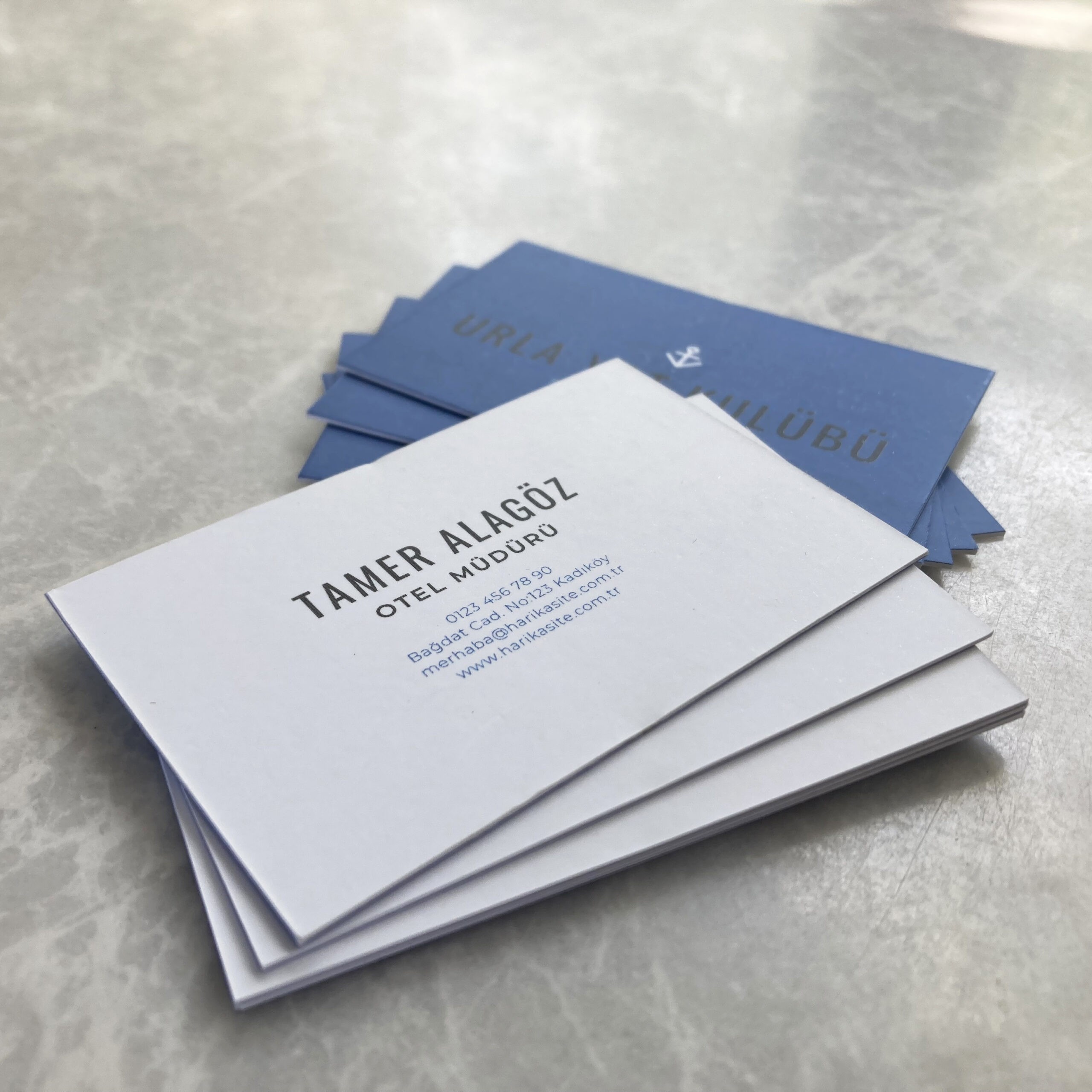 - 350 gr Kağıt Kullanımı: İki katman birleşerek 700 gr kalınlığa ulaşır, bu da sıradan kartvizitlerden çok daha sağlam bir yapı sağlar.